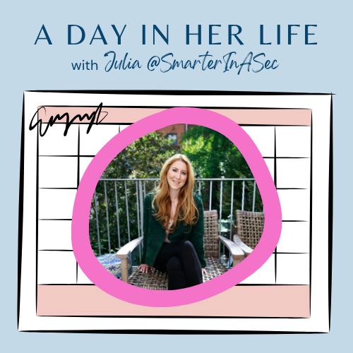 So excited to be talking to Julia @SmarterInASec this week about her days! Julia is a career and personal brand strategist and content creator sharing articles and actionable pieces of advice to help you level up in your career and in life. This conversation is a blast! Join us to hear: